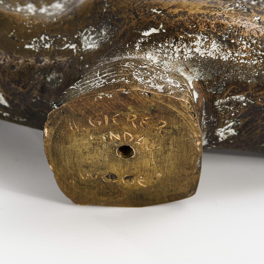 Bronze patiniert mit Resten der weißen Gussform. 1964. Auf der Standfläche gravierte Bezeichnung mit Titel. H 13 cm, L 24 cm.
