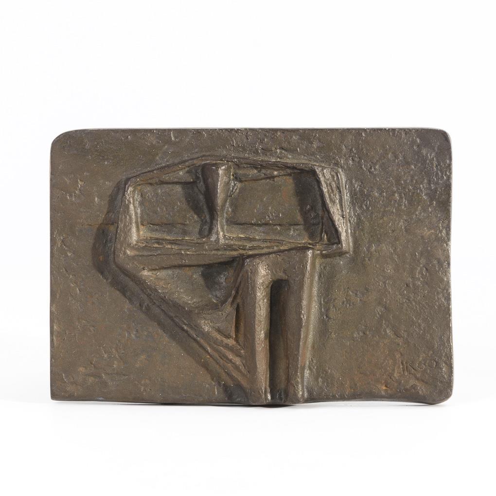 Eisenguss bronzefarben brüniert. Mit Monogramm "HK" bezeichnet und datiert (19)60, verso Gießermarke Buderus. 13 x 19 x 2 cm.