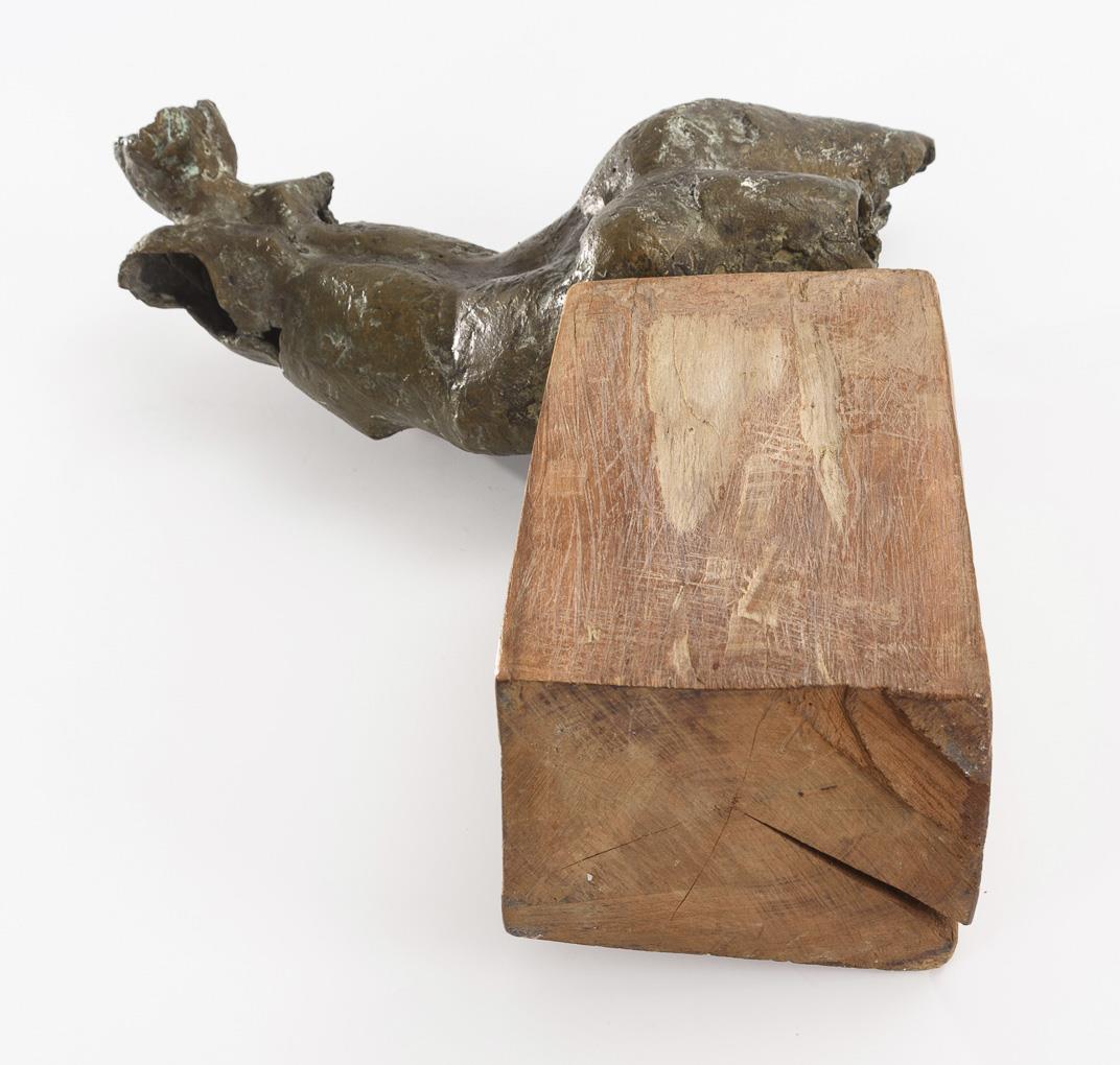 Bronze patiniert mit Resten der weißen Gussform, Holzsockel (Birne?). 1967. Gießermarke "H. Noack Berlin", auf der Sockelstandfläche Klebezettel mit Bezeichnung, Titel, Datum und Literaturangabe. H 23 / 40 cm, L 29 cm.