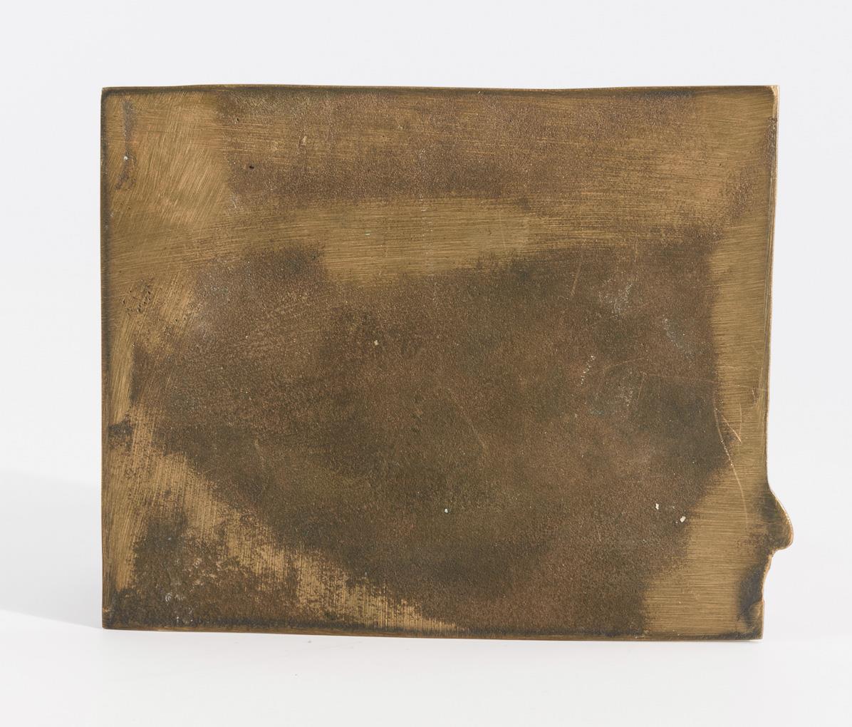 Bronze patiniert. Monogramm "N"(?) mit Datum (19)74. 10,5 x 13 cm.