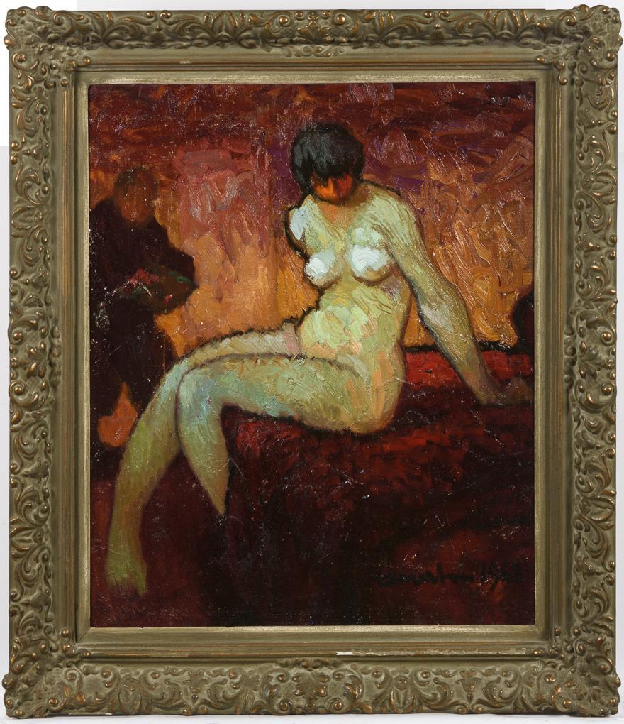 Weiblicher Akt auf rotem Fond