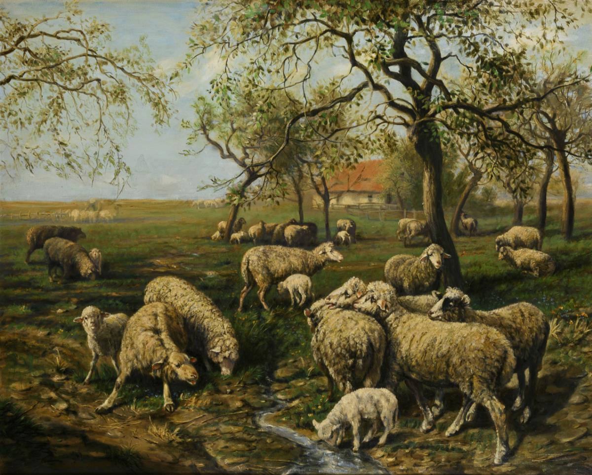 Die Tiere im Sonnenschein nahe dem Bauernhof.