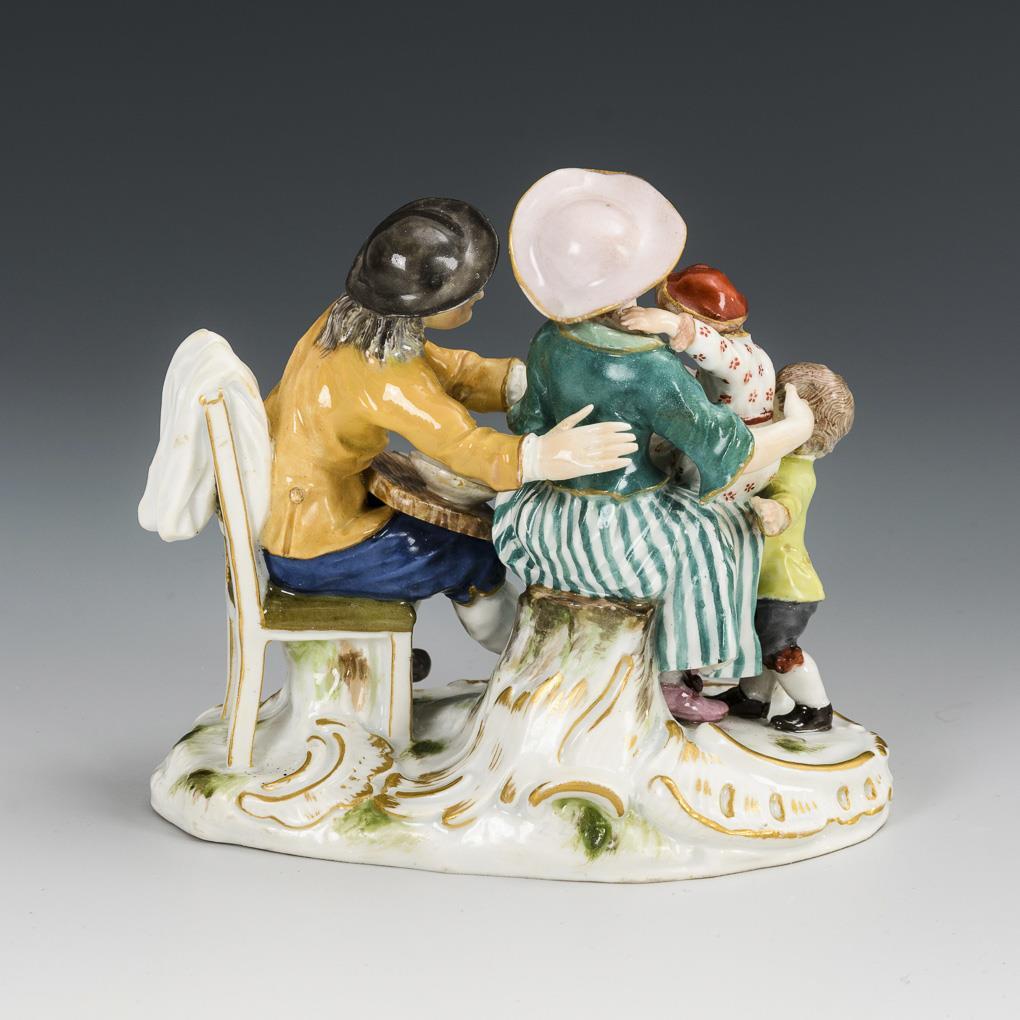 Darstellung einer bäuerlichen Familie mit zwei Kindern. Beide Arme und Hut des Bauern, rechter Arm der Frau sowie Oberkörper und rechter Arm des Knaben restauriert.