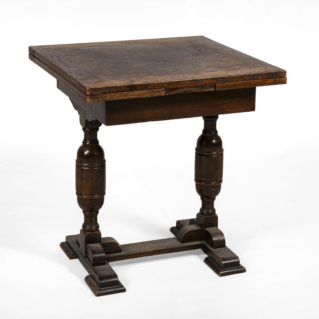 Kleiner Salontisch in Anlehnung an barocke Formensprache, auf 2 Balusterbeinen mit Fußbrett; mit Ausziehfunktion (einseitig oder zweiseitig). Alters-/Gebrauchsspuren.