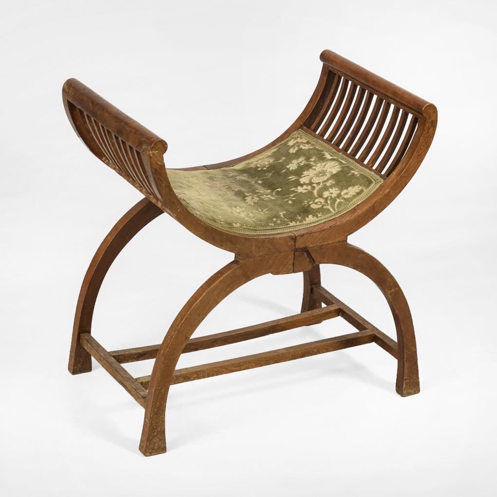 Nussbaum furniert. 58 x 56 x 37 cm, Sitzhöhe ca. 38 cm.