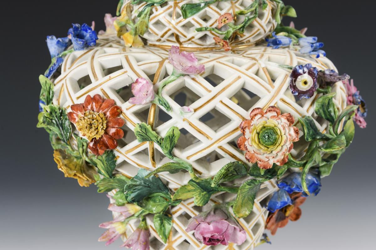 Durchbruchvase mit Blütenbelag. Meissen.