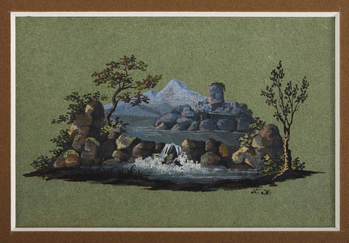 11 Biedermeier-Stammbuchblätter (1830-1844). 10 Aquarelle, 1x Mischtechnik, zumeist beschriftet, teils datiert. Meistens 9 x 13 cm, Passepartout je 15 x 21 cm. Teils mit Knickspuren und kleinen Defekten.
