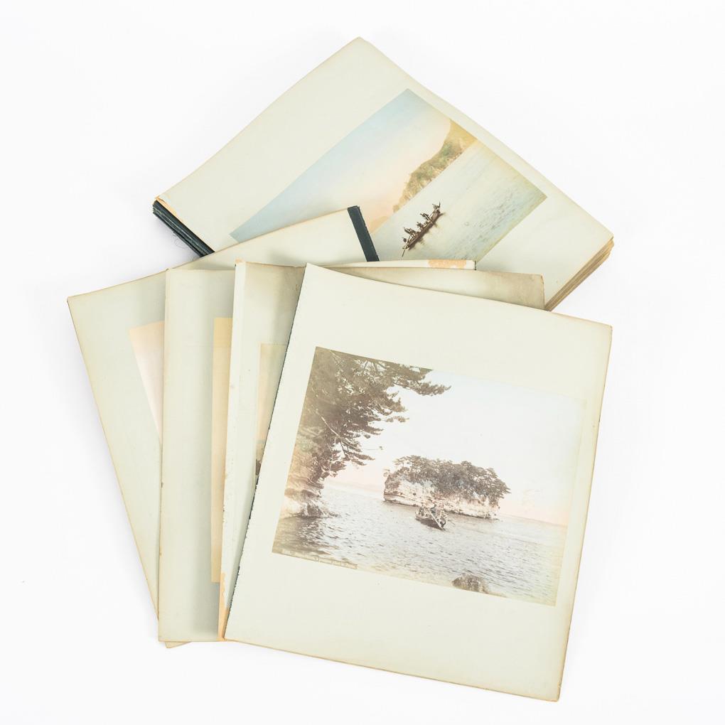 Großformatige Fotos von Landschaften, Tempeln, kunsthistorischen Details und Menschen. Im Foto englisch beschriftet. Wohl aufgetrenntes Album, Fotos auf Karton aufgezogen. Nur vier Fotos mit Beeinträchtigungen.
