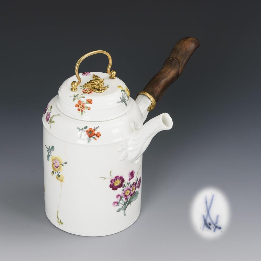 Barocke Schokoladenkanne mit Blumenmalerei. Meissen.