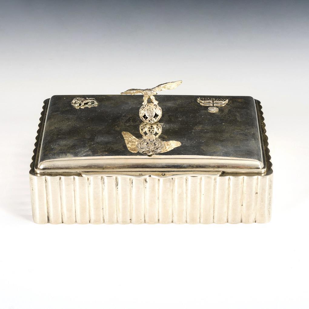 Art-déco-Silberdose mit Adler.