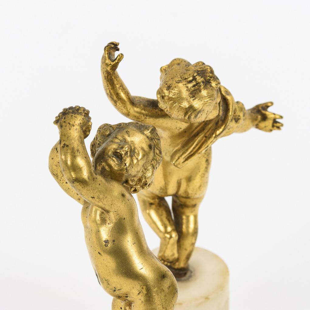 Bronze vergoldet, weiße Marmor-Postamente. Wohl 18. Jh. H je 11,5 / 18 cm.