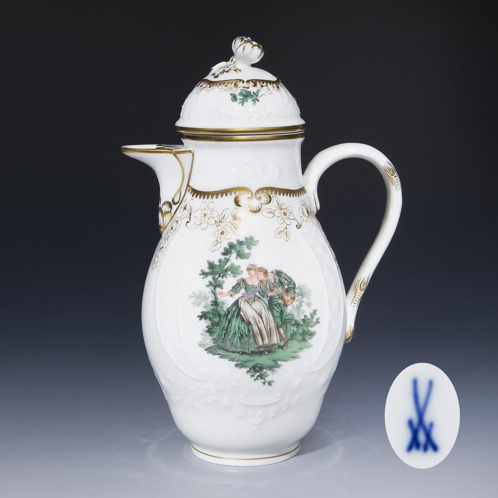 Kaffeekanne mit Watteaumalerei. Meissen.