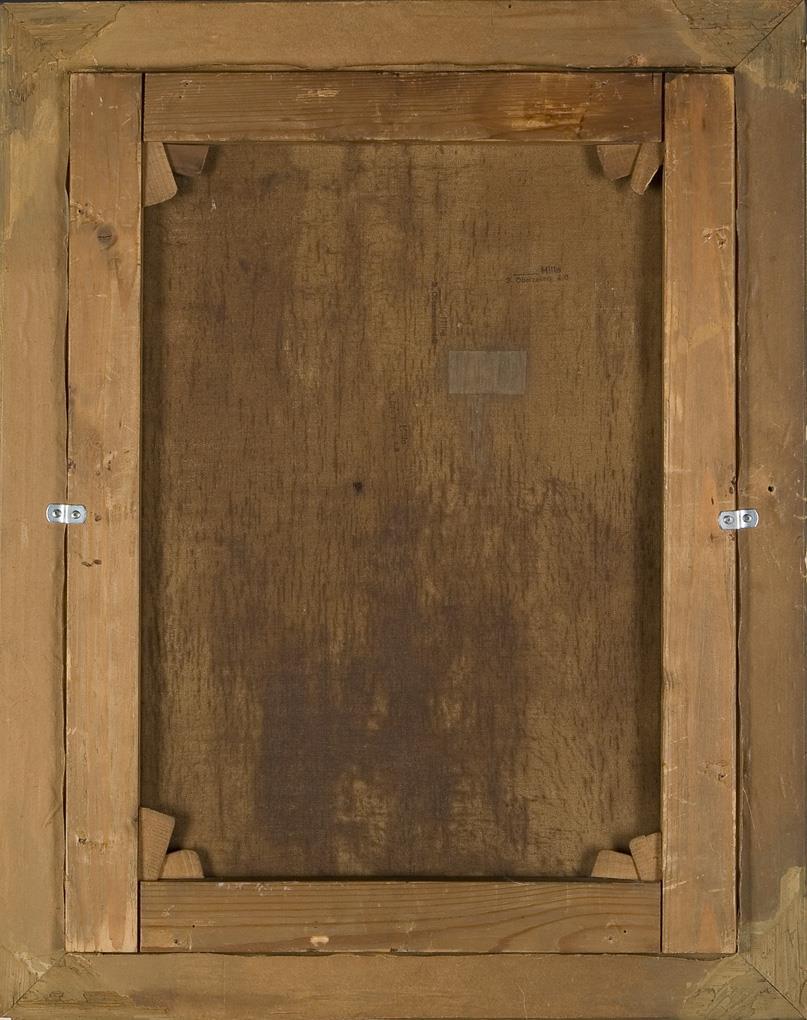 Siesta im ländlichen Italien in paradiesischer Behaglichkeit mit idealisierender Tendenz dargestellt. Originaler Keilrahmen, profilierter Rahmen. Rückseitig ein kleiner Flicken.