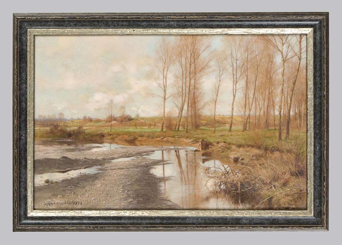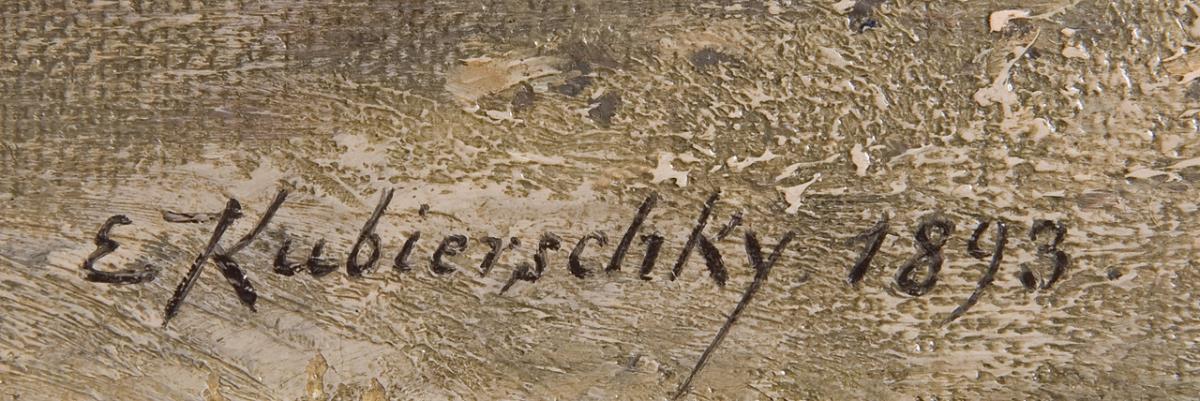 Kubierschky, Landschaftsmaler, studierte an der Akademie in Berlin. Ab 1881 Lehrtätigkeit in Berlin und Leipzig. Seit 1889 in München ansässig. Auf kleinformatigen Bildern fängt er zarteste Stimmungen mit weichmodelliertem Licht im Vorfrühling und gelegentlich im Herbst ein. Die Farben sind stets etwas verschleiert und sehr nuancenreich * Partnerauktion Bergmann.