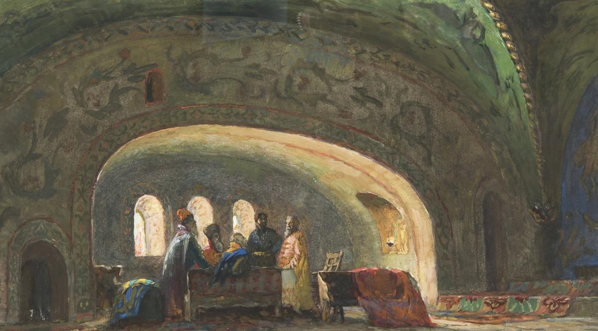 Dmitrijew, Bühnenbildner, Maler, Zeichner. Studierte in Sankt Petersburg. Bis 1939 in Sankt Petersburg tätig. Erhielt diverse Auszeichnungen. Ließ sich von zahlreichen Kunstrichtungen inspirieren. Ab Mitte der 1930er Jahre mit realistischer Tendenz und romantischer Gestaltung * Partnerauktion Bergmann.