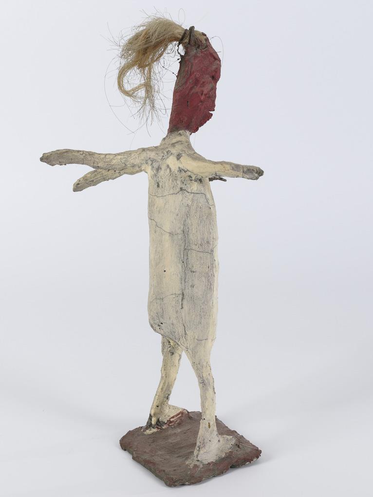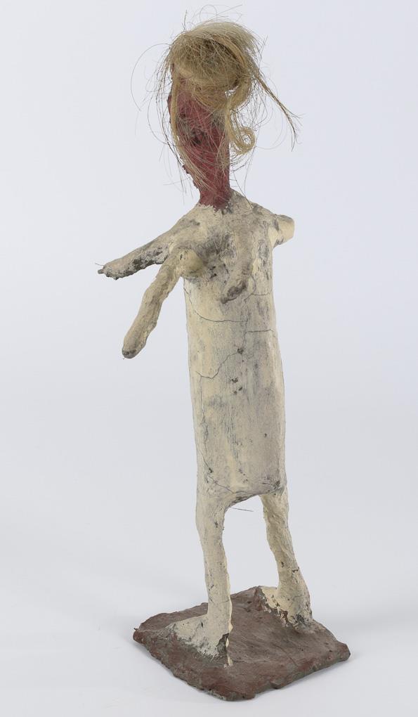 Zement bemalt, Eisendraht, Haare. H 37 cm.
