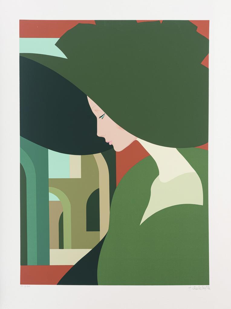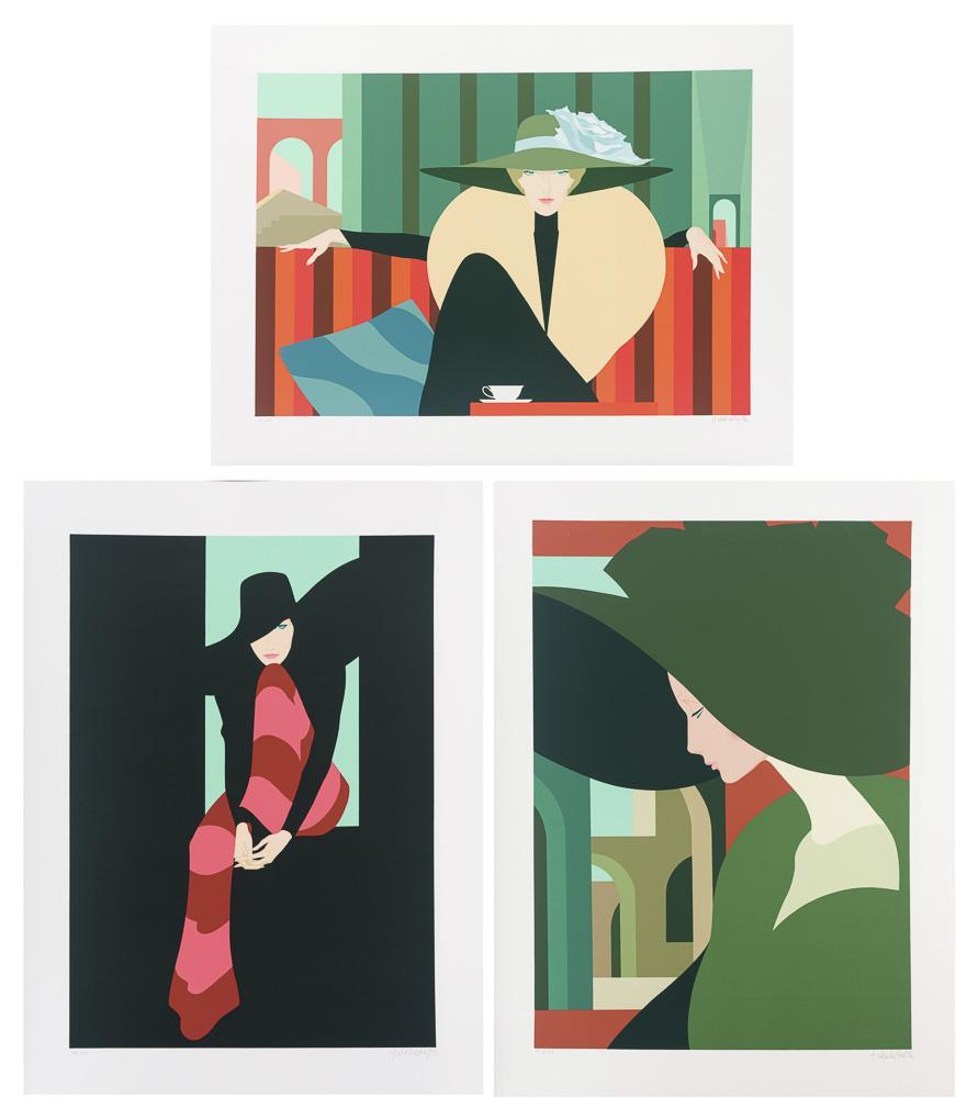 Dame mit grünem Hut, Platte: 70 x 50 cm, Blatt: 84,8 x 63 cm, Exemplar: P.P. 13/20 (Printers Proof), oberer Rand mit Knick | Vornehme Dame auf Canapé, Platte: 49 x 70 cm, Blatt: 65 x 85 cm, Exemplar: 274/325 | Dame in gestreifter Hose, Platte: 69,5 x 49,5 cm, Blatt: 85 x 65 cm, Exemplar: 198/325.