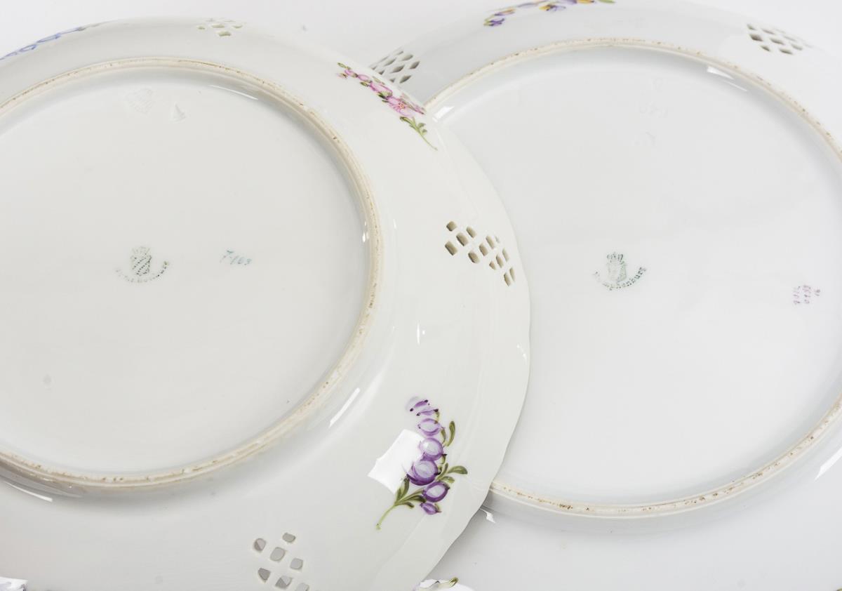 2 Schalen mit Durchbruchrand und Blumenmalerei. Nymphenburg.