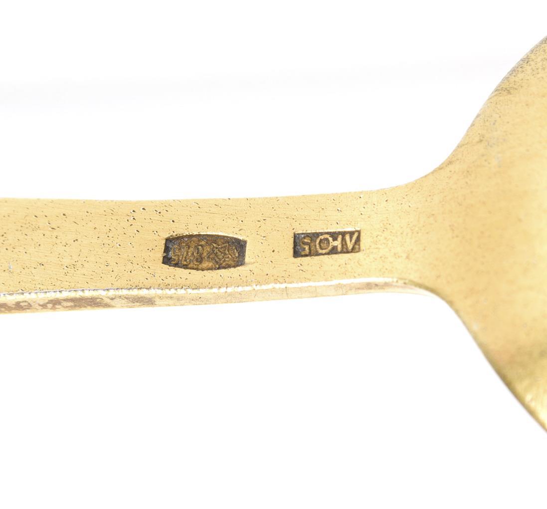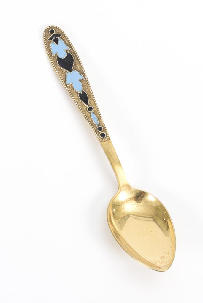 Vergoldete Löffel mit blauer Emailarbeit am Griff. Minimale Fehlstellen im Email.
