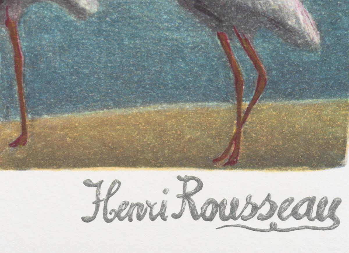Bezeichnet "Lithographie réaliseé par les Imprimeries Parisiennes, d'après l'œuvre originale de Henri Rousseau "Les flamants".
