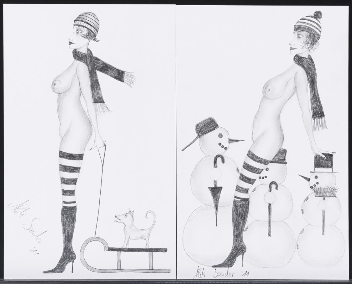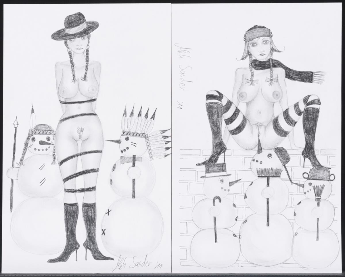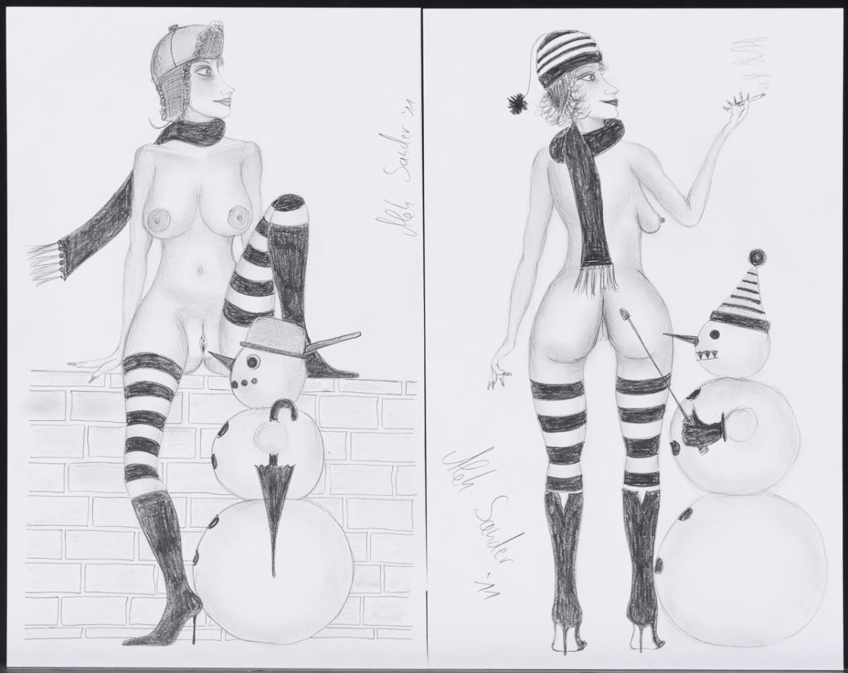 Alek Sander: 8 humorvolle Zeichnungen mit Akt und Schneemann