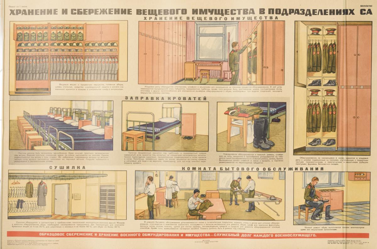 10 Plakate sowjet-militärischer Lehranweisungen, u.a. Aufbau einer Kalaschnikow, Uniformierung, Pflege der Stiefel, Aufreihung und militärischer Gruß, Ordnung und Sauberkeit. Teils mit starken Beschädigungen.