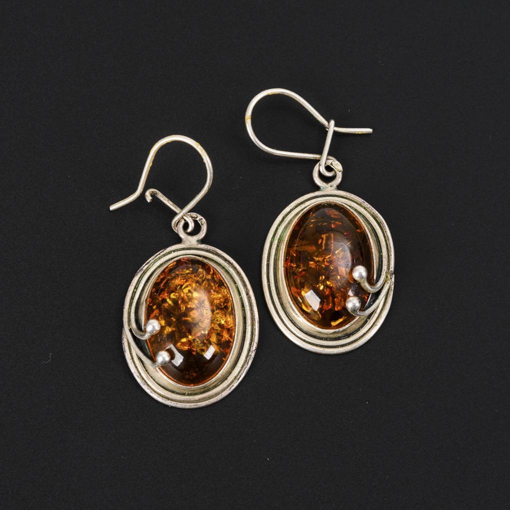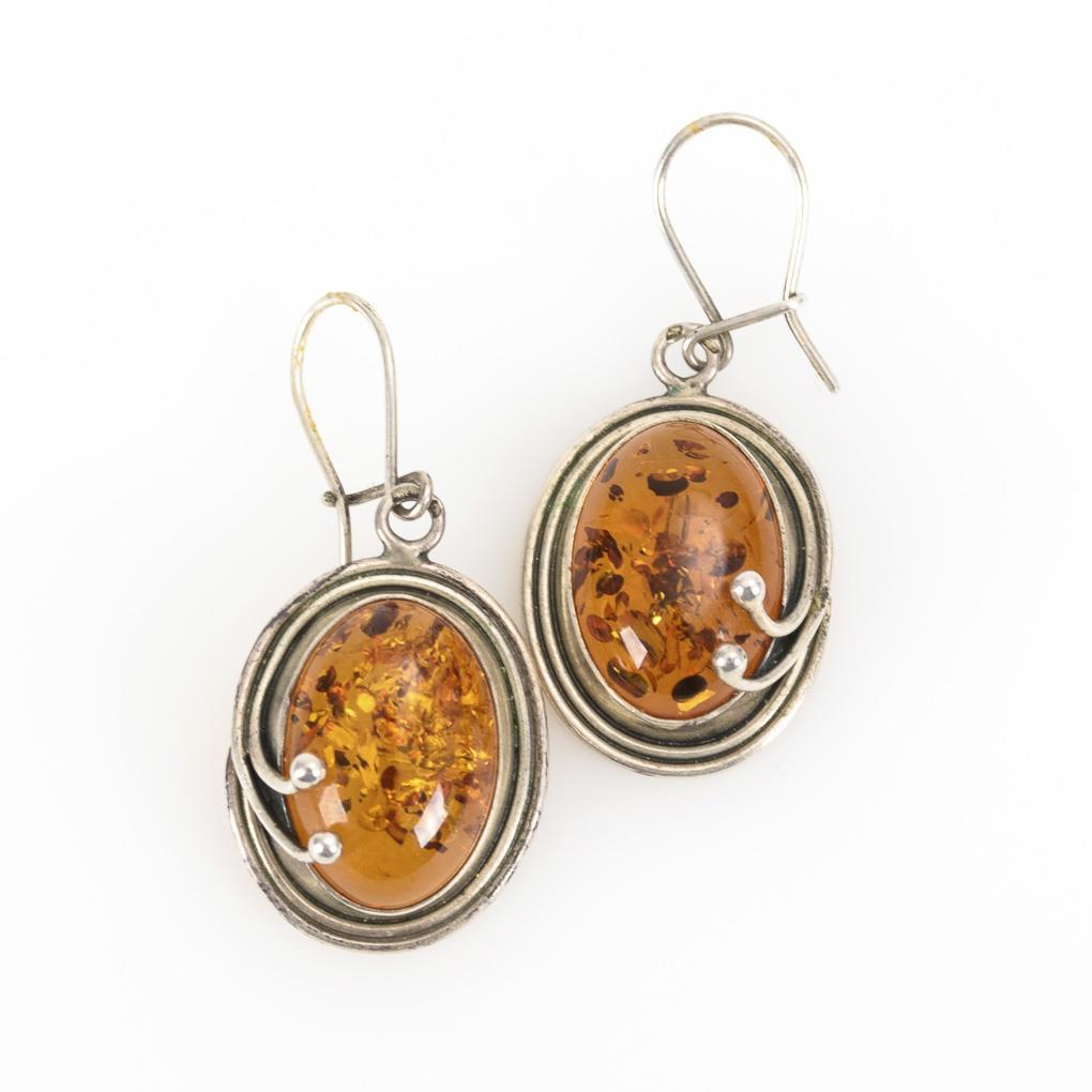 Bernsteincabochon in verziertem Rahmen, an Einhängehaken.