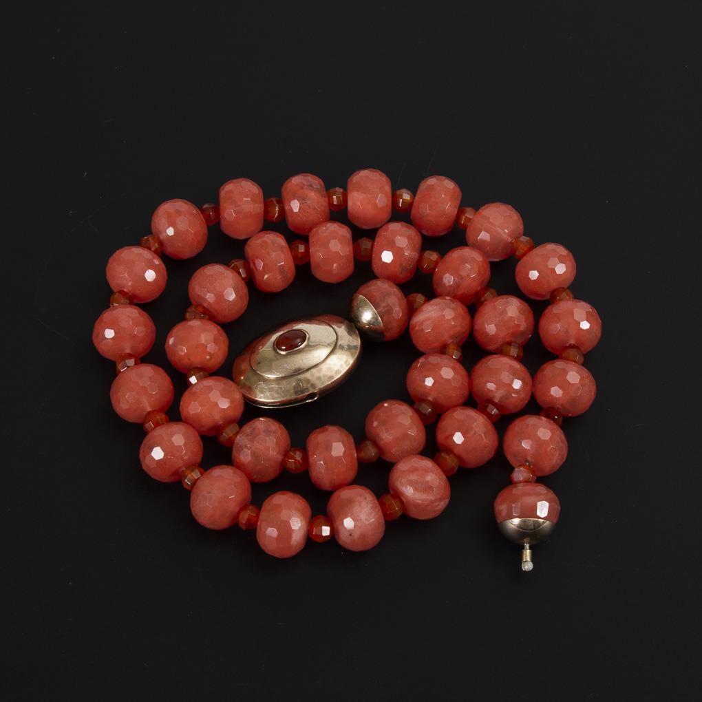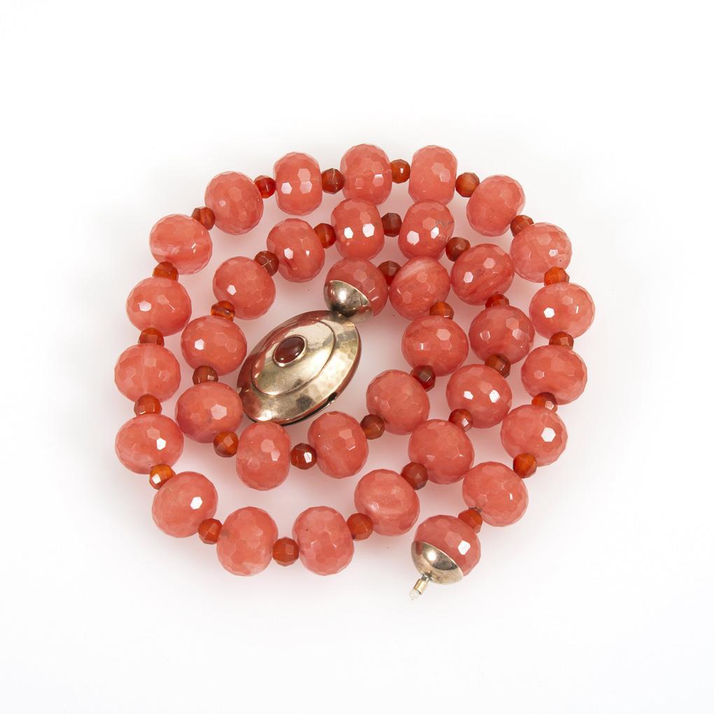 Schnürkette mit polygonalen Kugeln, an großer Patentschließe mit Cabochon.