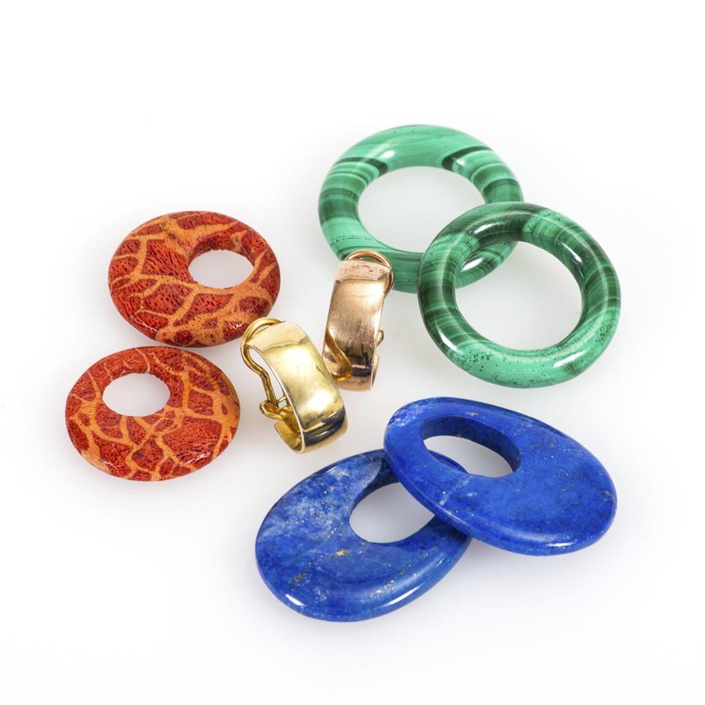 Ohrklipp-Paar mit 3 verschiedenen Steinanhängern.