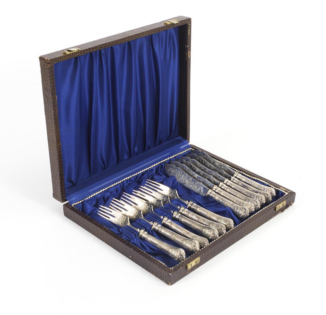 Silbernes Fischbesteck für 6 Personen im Etui.