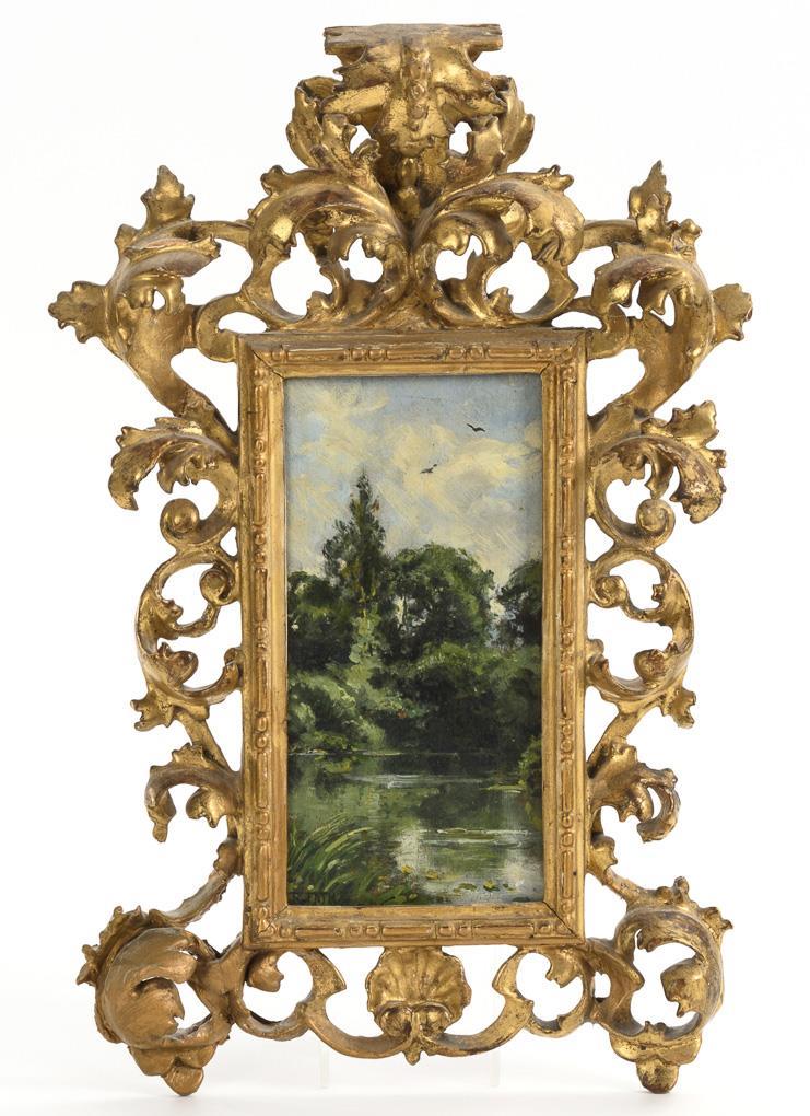 20 x 10,5 cm. Gerahmt : 39 x 26 cm (barocker ajour geschnitzter Goldstuckrahmen).