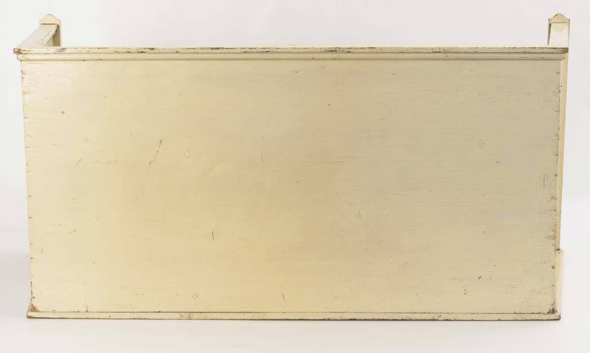Holz, cremefarben lackiert und schwarz abgesetzt. 55,5 x 119,5 x 48 cm.