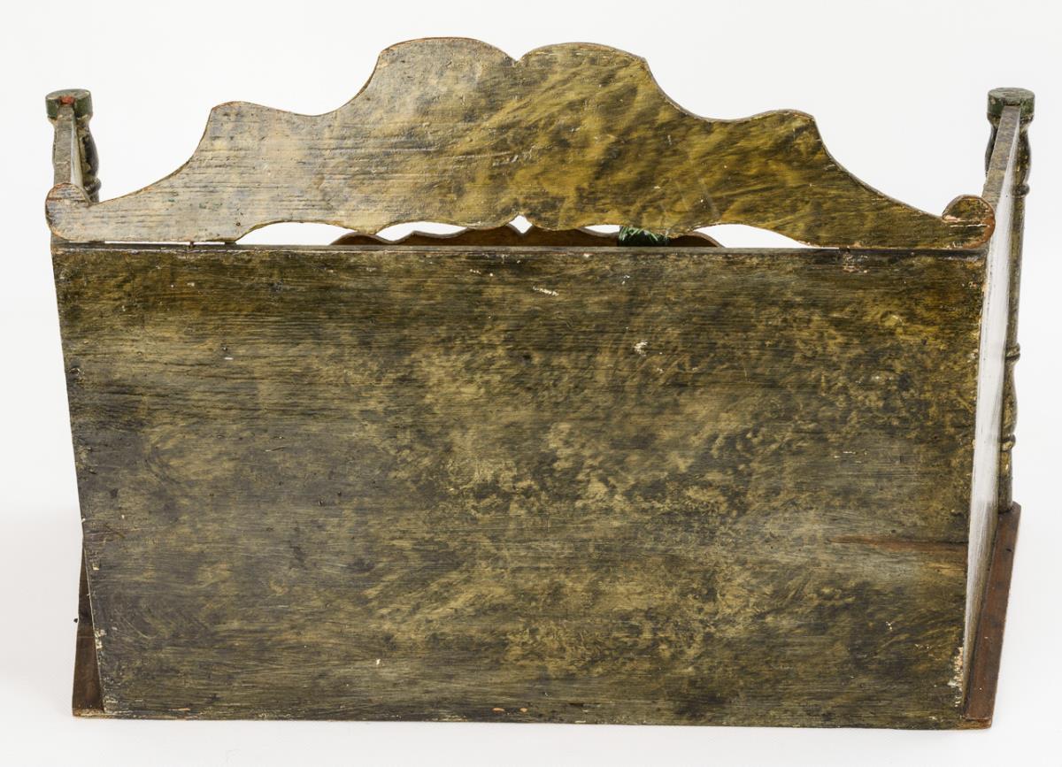 Holz, grün gestrichen. 34,5 x 56 x 26 cm.