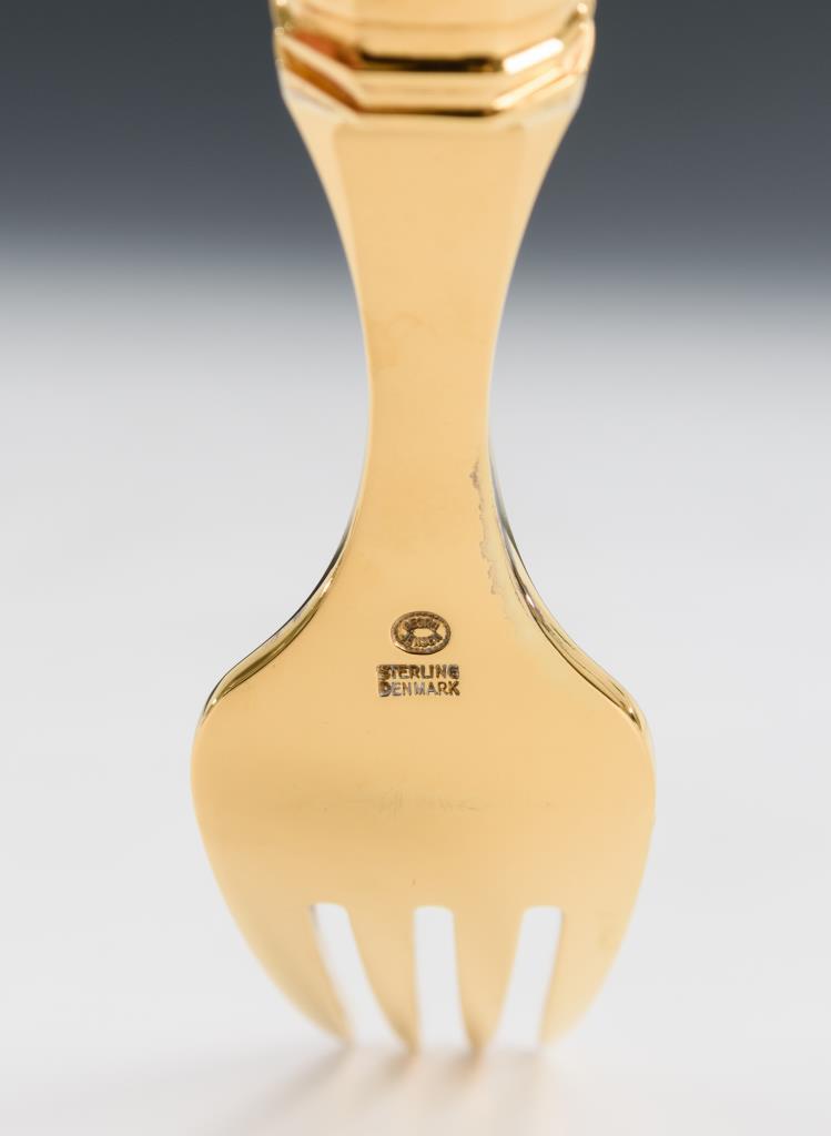 Ungemarkt, 2. H. 20. Jh., Zinken Firmenzeichen "Georg Jensen/Sterling Denmark" bzw. 1x "Sterling Denmark/Firmenzeichen A. Michelsen Copenhagen" gepunzt.Dänemark.