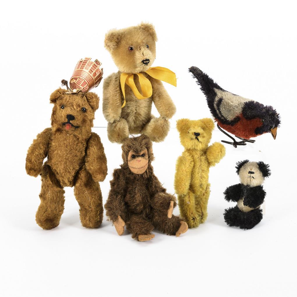 Mohair, Kunstseidenplüsch, teils mit Blechkörper. H 6 - 12 cm.