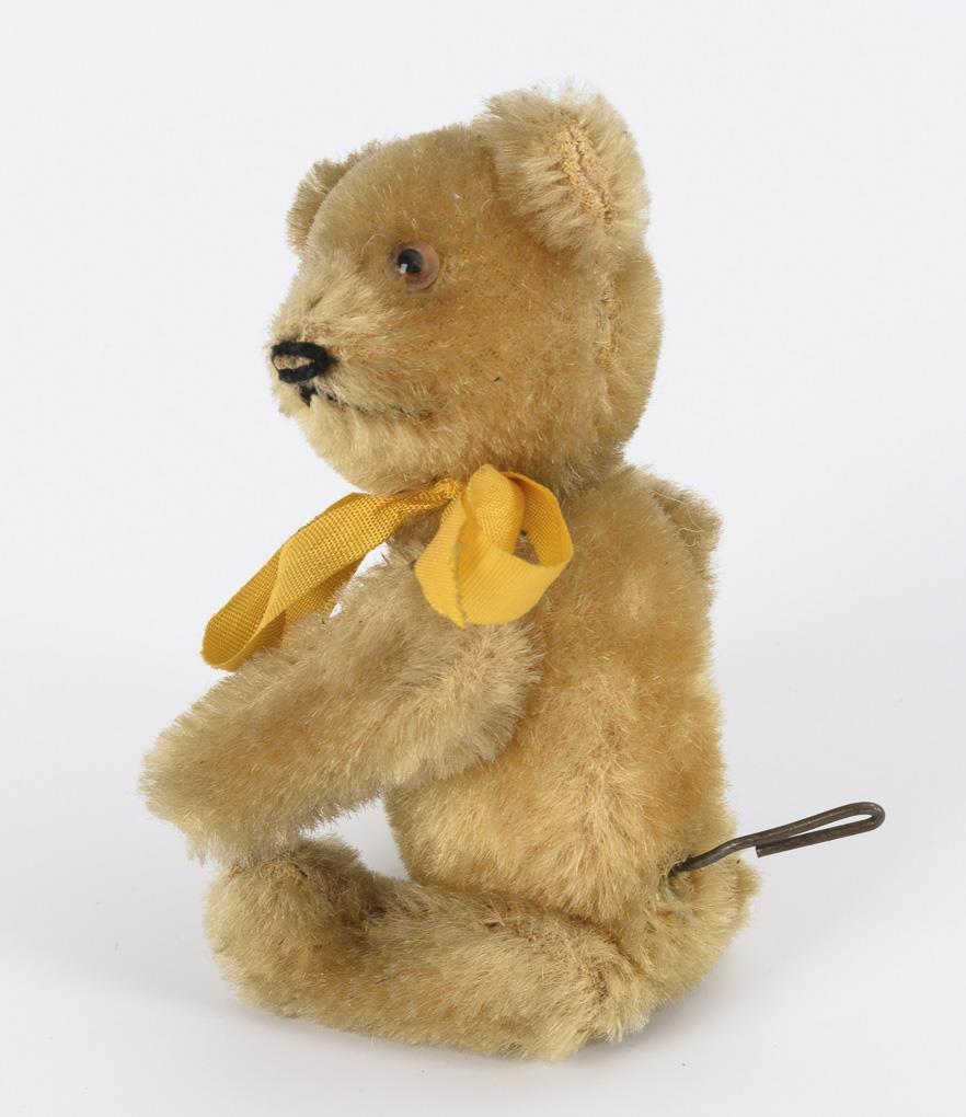 3 Teddys, 1 Panda, 1 Affe und 1 Pickvogel. Darunter 1x Yes-No-Teddy. Leichte Altersspuren. Vogel mit defektem Werk, ohne Schlüssel.