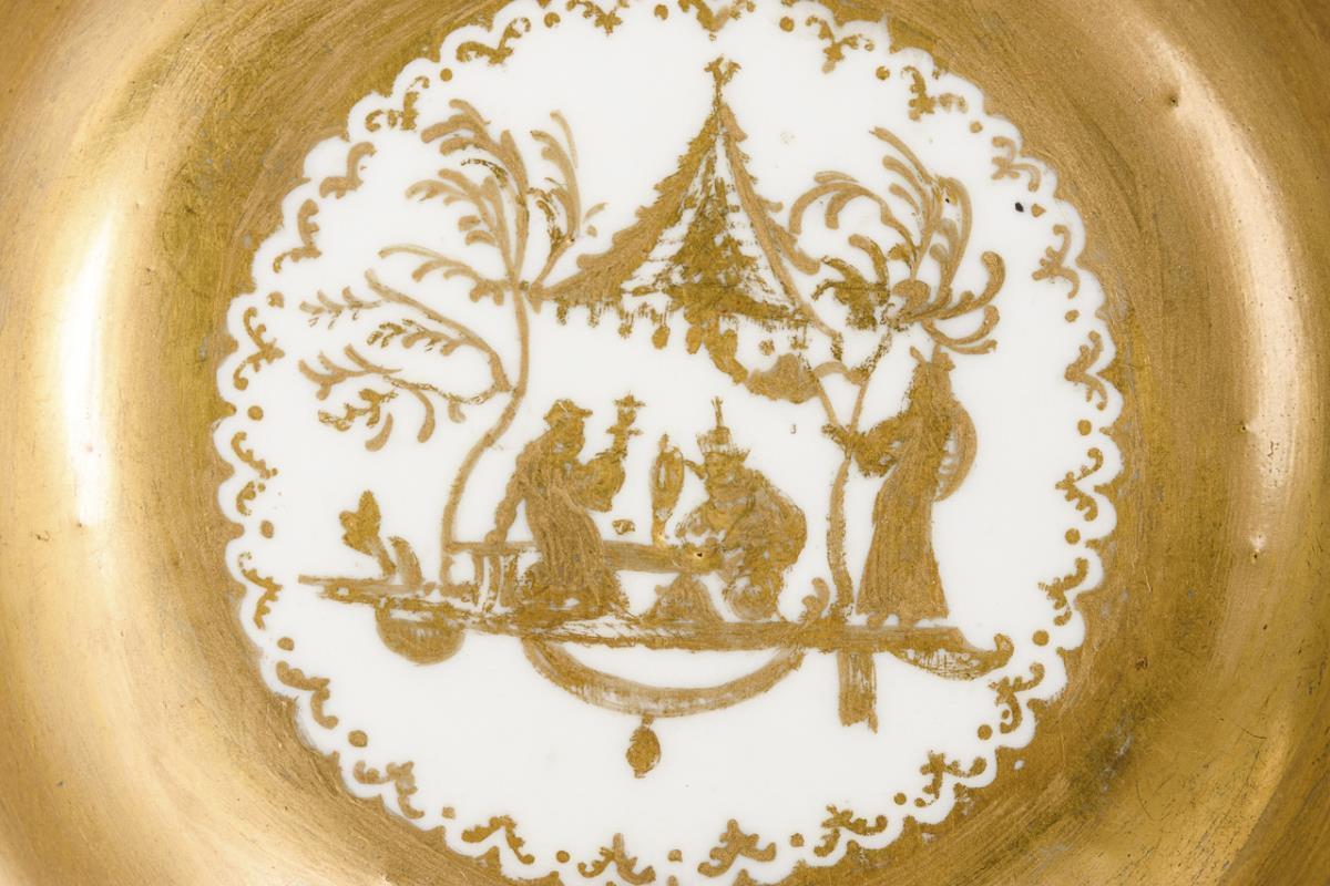 Böttger-Porzellan, Goldmalerei. Ø 12,5 cm.