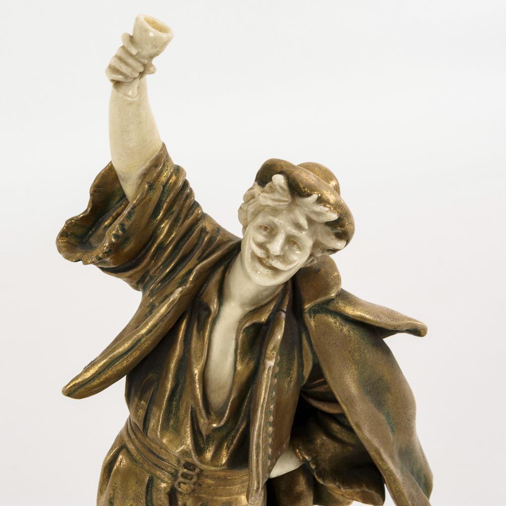Stehender Mann mit freudigem Blick und erhobenem Weinkelch, auf Natursockel. Leicht berieben.