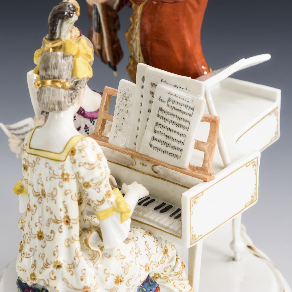 Auf einem Rocaillesockel um ein Spinett gruppierte, musizierende Rokokofamilie. Geigenhals und Haarsack restauriert.