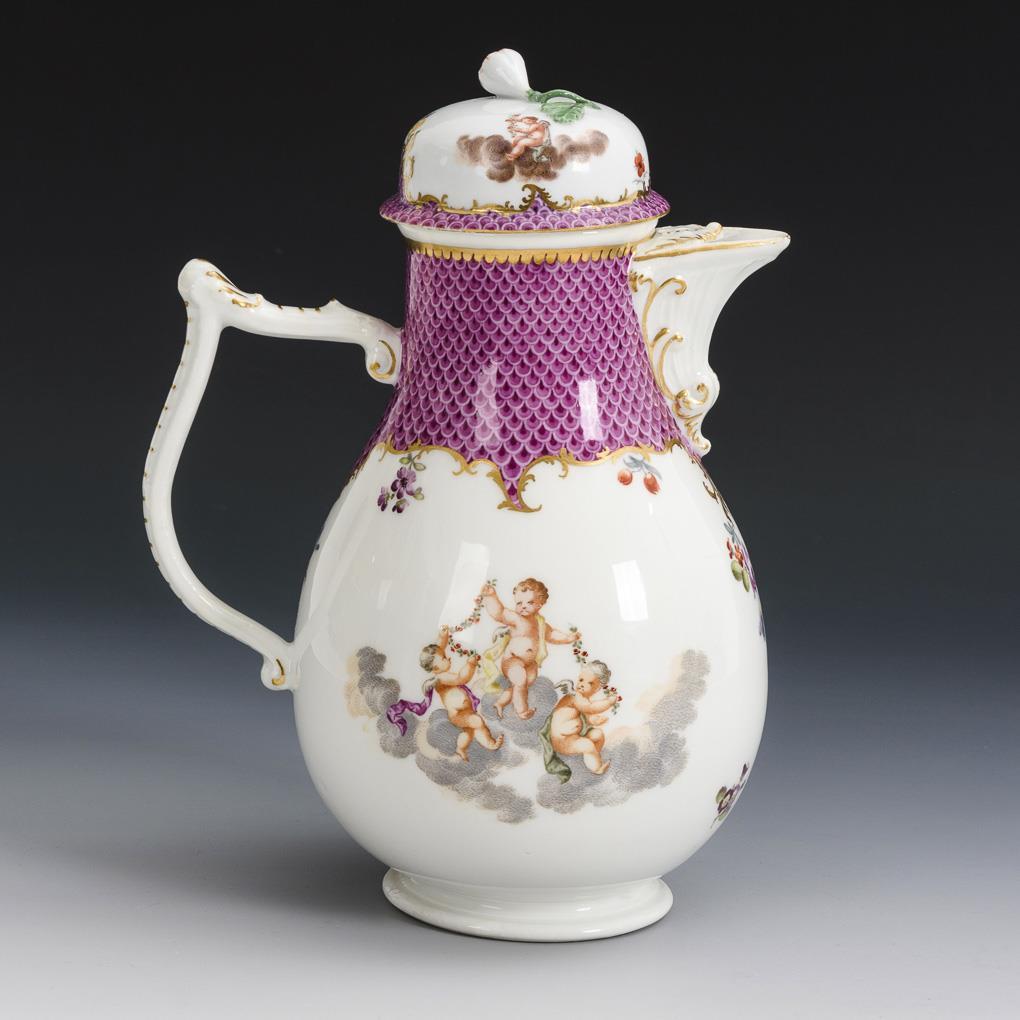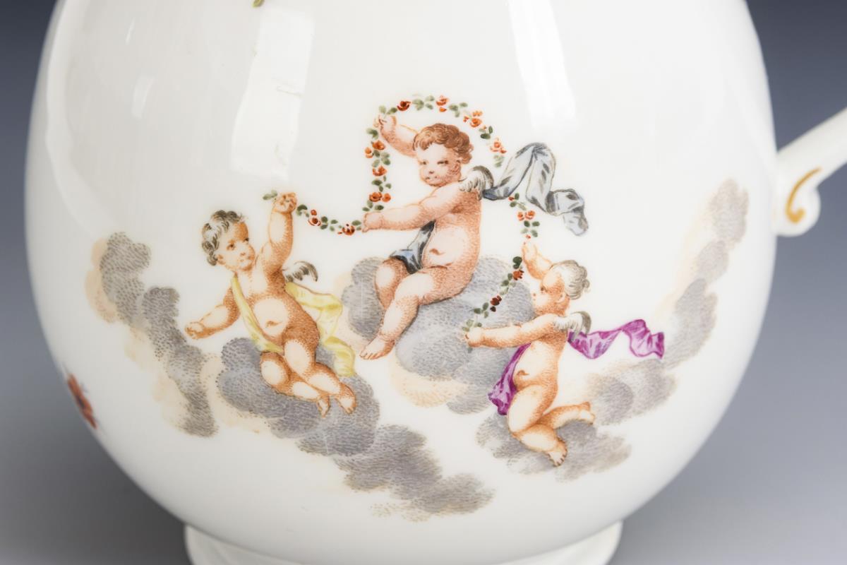 Barocke Kaffeekanne mit Puttenmalerei. Meissen.