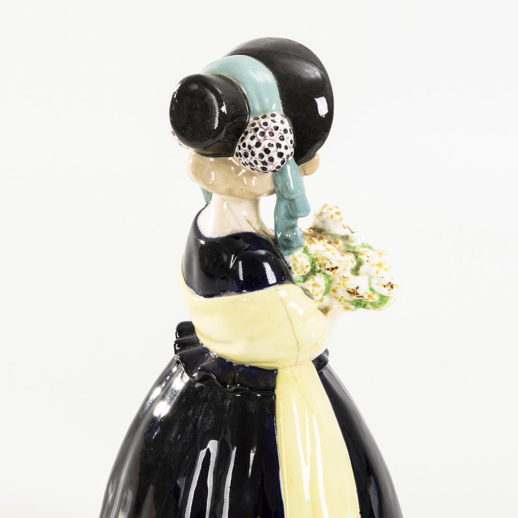 Haarriss an Hals und rechtem Arm, kleiner Randchip am Hut, leichte Bestoßungen am Blumenstrauß.