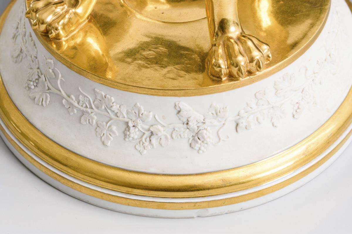 Runder Sockel mit Biskuit- Eichenlaubrelief sowie vier Tatzenfüßen. Haarriss am Ring.