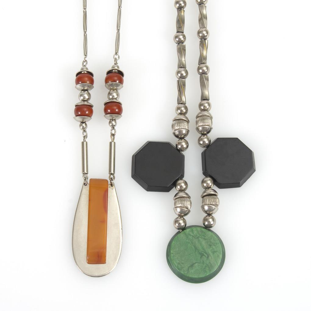 2 Art-déco-Colliers JACOB BENGEL, 1930er Jahre. Idar-Oberstein.
