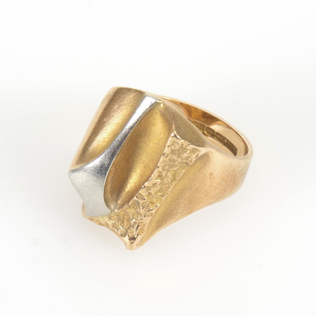 Gelbgold 585 gestempelt. Punze: Finnland M8 (1989). Ringgröße 55. 9,7 g.