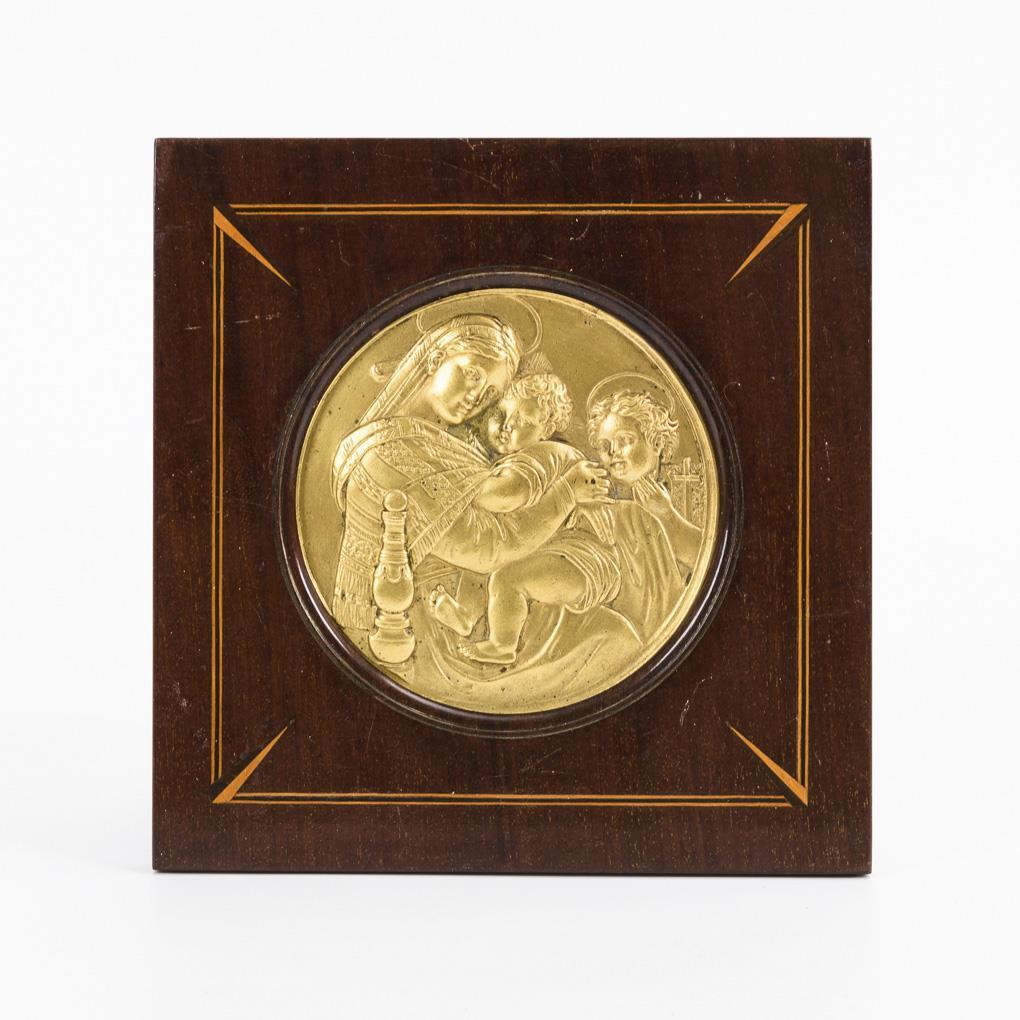 Bronzerelief: Madonna della Sedia im Holzrahmen