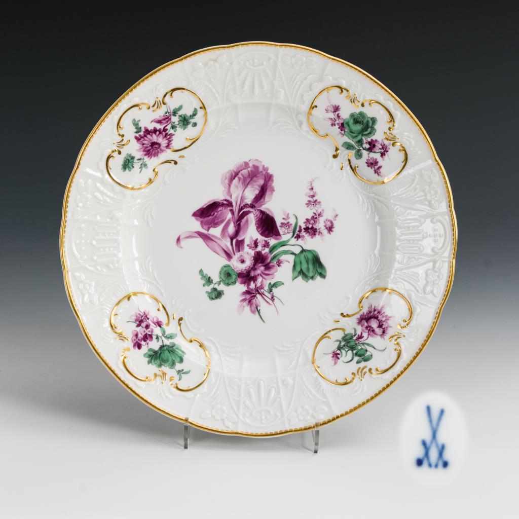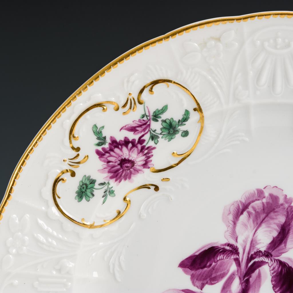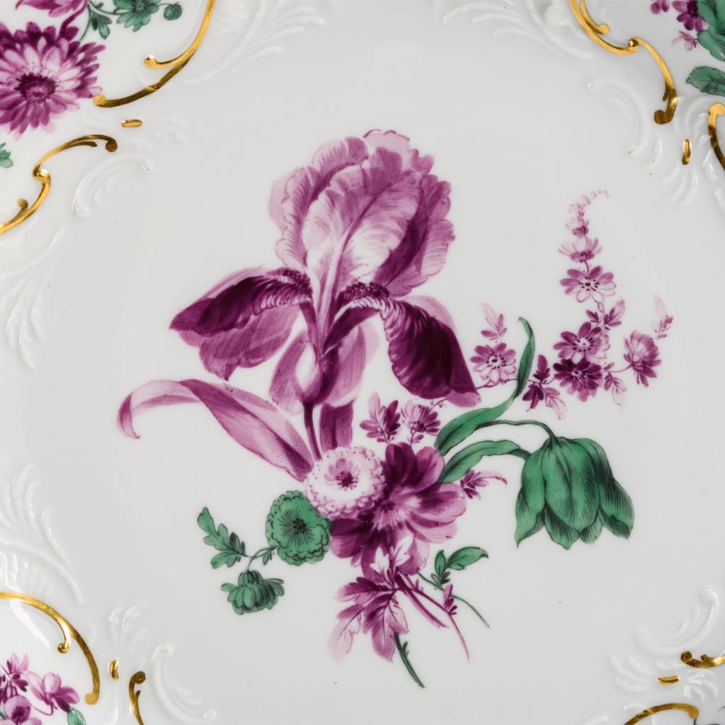 Form "Dulong". Mit Blumenmalerei in Kupfergrün und Purpur.