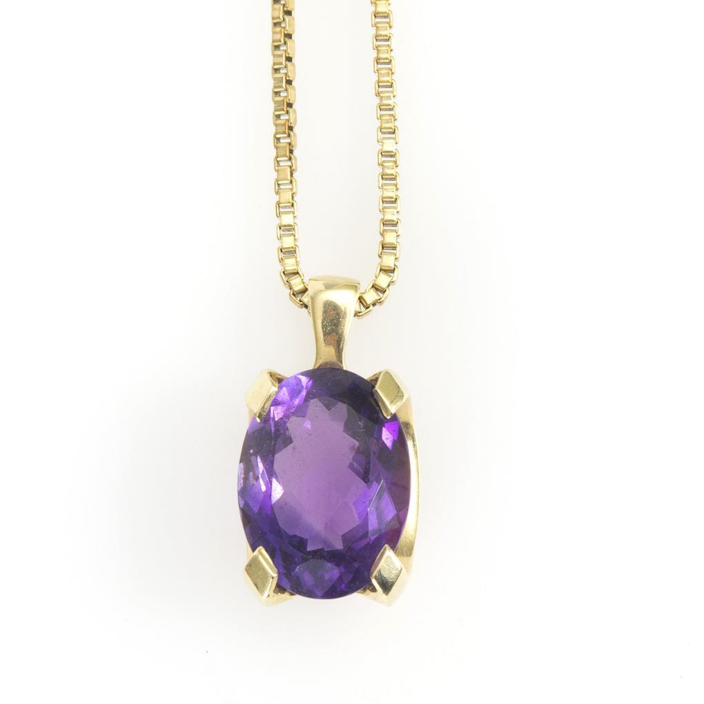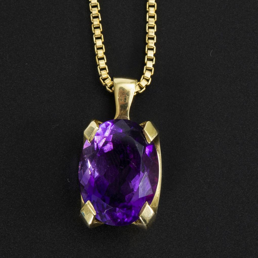 Krappengefasster Amethyst an langer Venezianerkette mit Ringfederschließe.