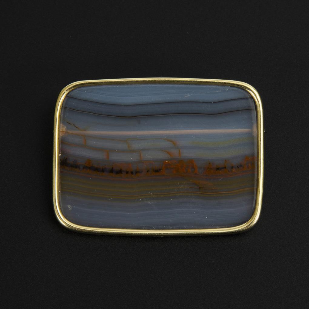 Durchscheinende Achattafel in Zargenfassung. Kugelhaken.