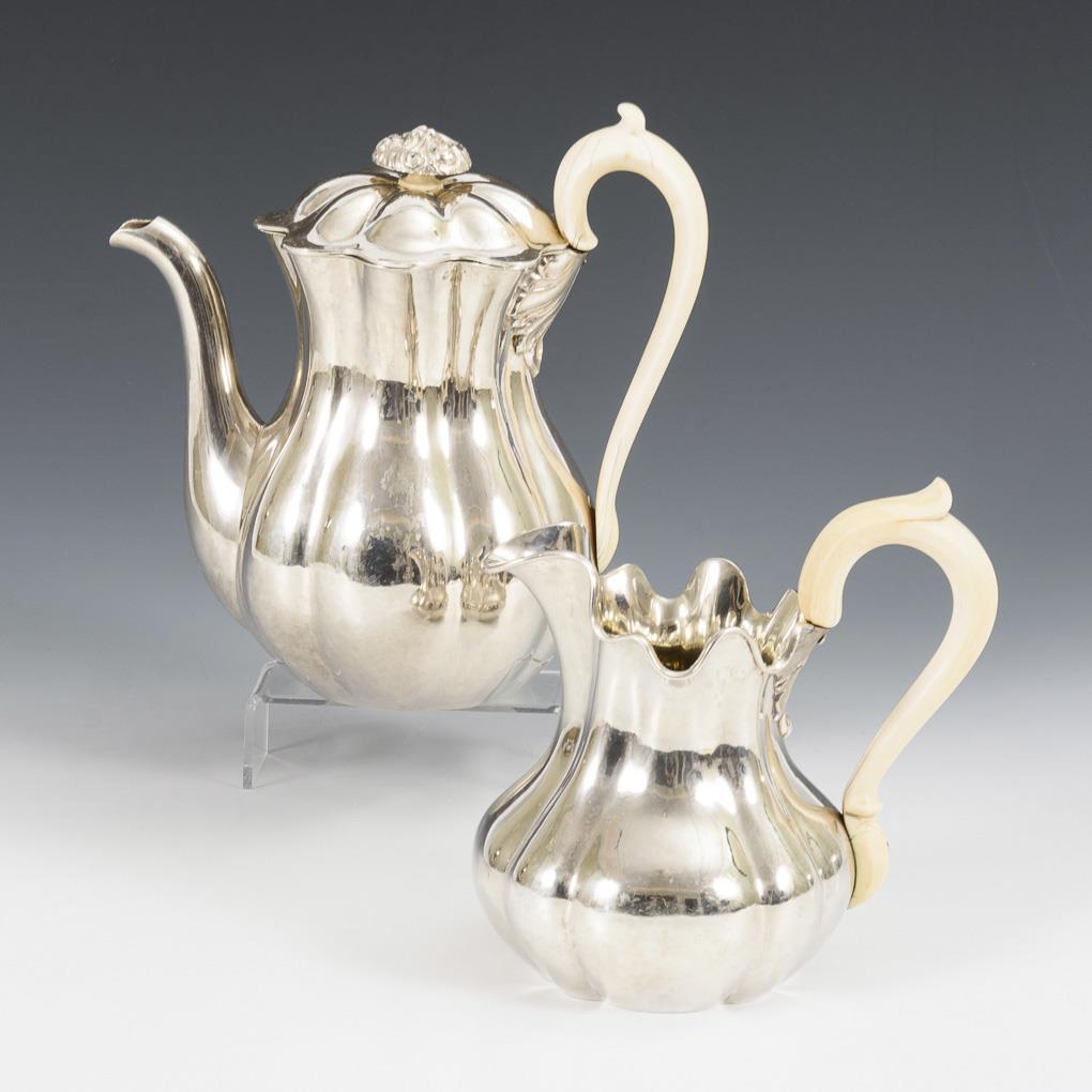 Biedermeier-Kaffeekanne und Milchkännchen. Mayrhofer, München.