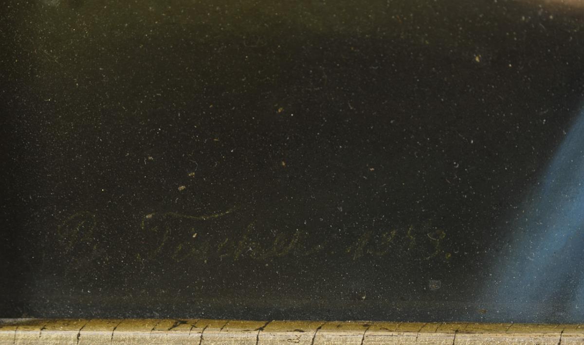 43 x 48 cm. Gerahmt & hinter Glas : 49 x 53 cm (Glas defekt).